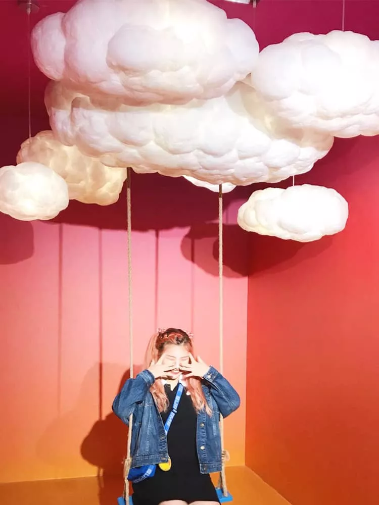这家缓缓升降的漂浮云朵灯正是亮点所在