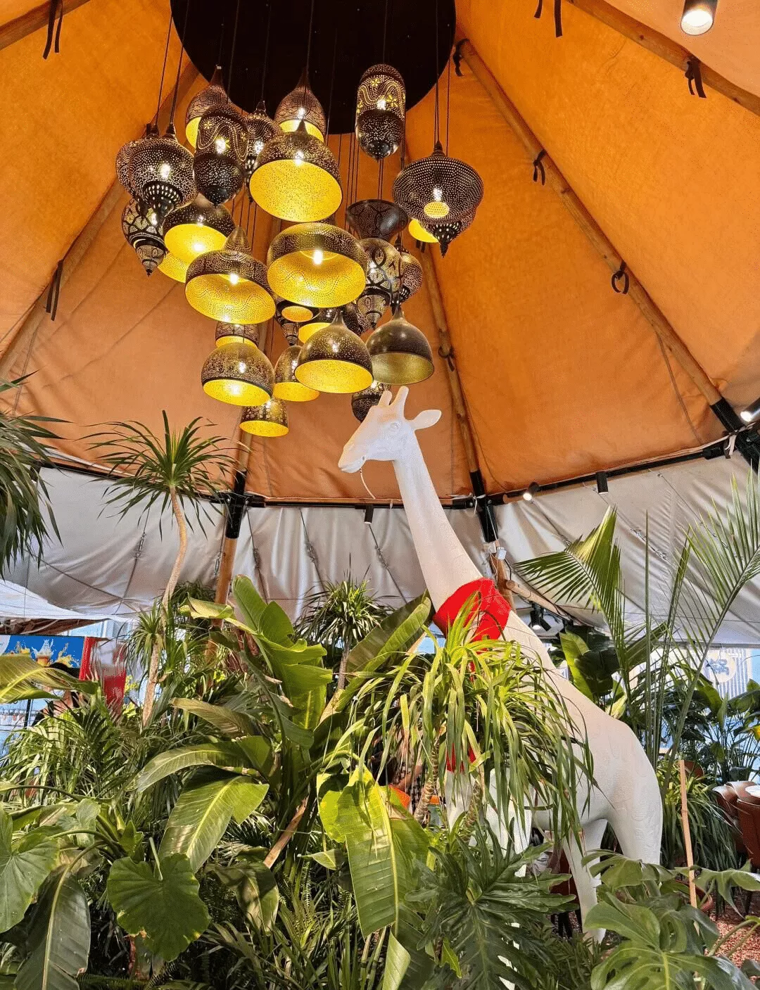走进餐厅,首先映入眼帘的是那一盏盏异域风情的吊灯,它们如星星般点缀在餐厅的顶部